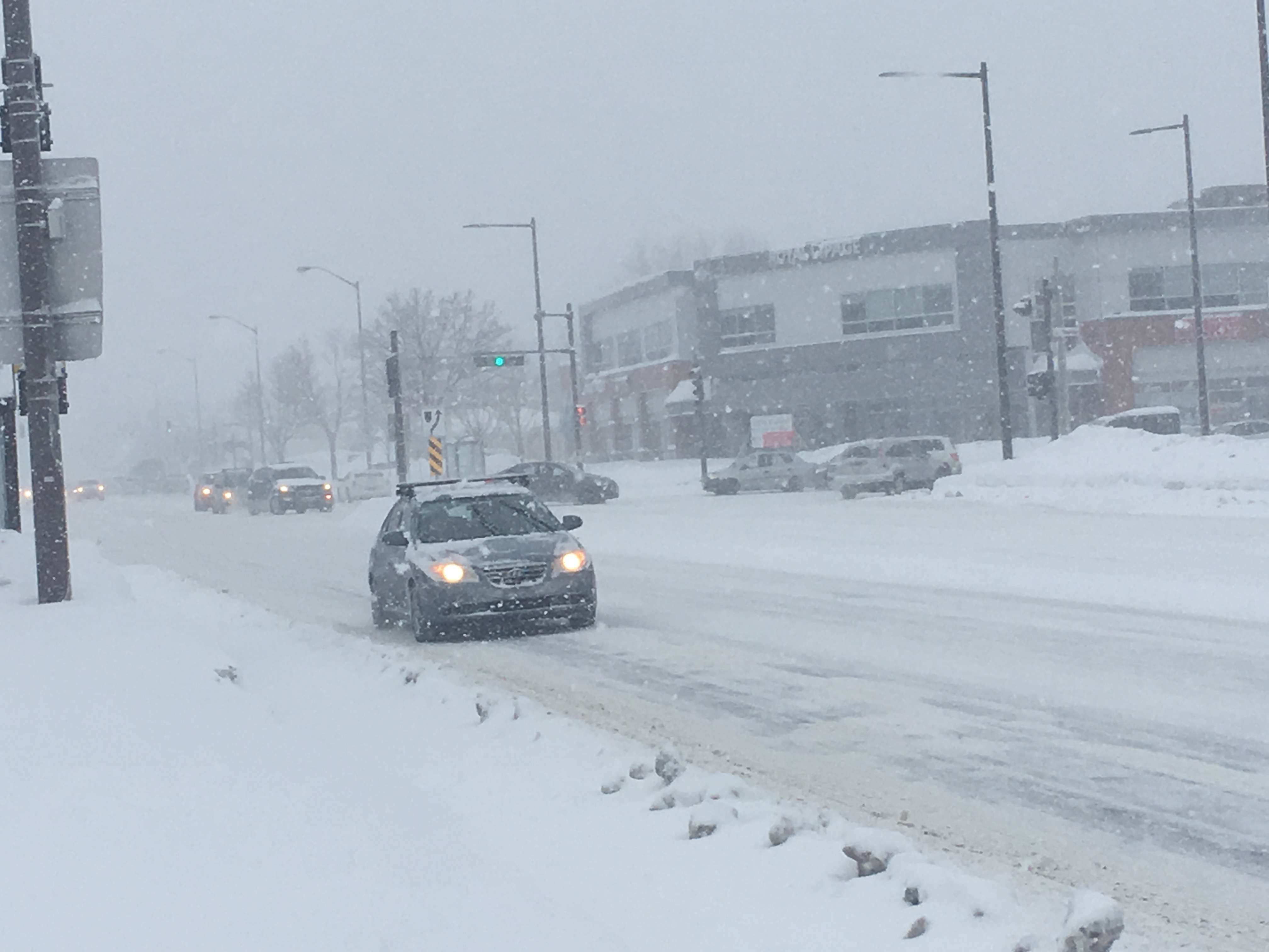 Les déplacements sont difficiles et selon Environnement Canada, les averses ne cesseront que tard en soirée. Un vent du sud-ouest de 40 km/h devrait refroidir le mercure jusqu’à moins 32 durant la nuit.
