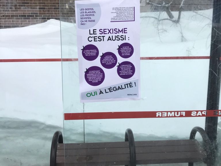 FÉMINISME. Une opération de sensibilisation contre le sexisme a été orchestrée par le Regroupement d’éducation populaire en action communautaire (RÉPAC) des régions de Québec et Chaudière-Appalaches. En cette Journée de la femme, des affiches portant le message «Les gestes, les blagues, les propos sexistes, ça ne passe pas! Oui à l’égalité!» ont été apposées dans des lieux symboliques et relayées sur les réseaux sociaux.