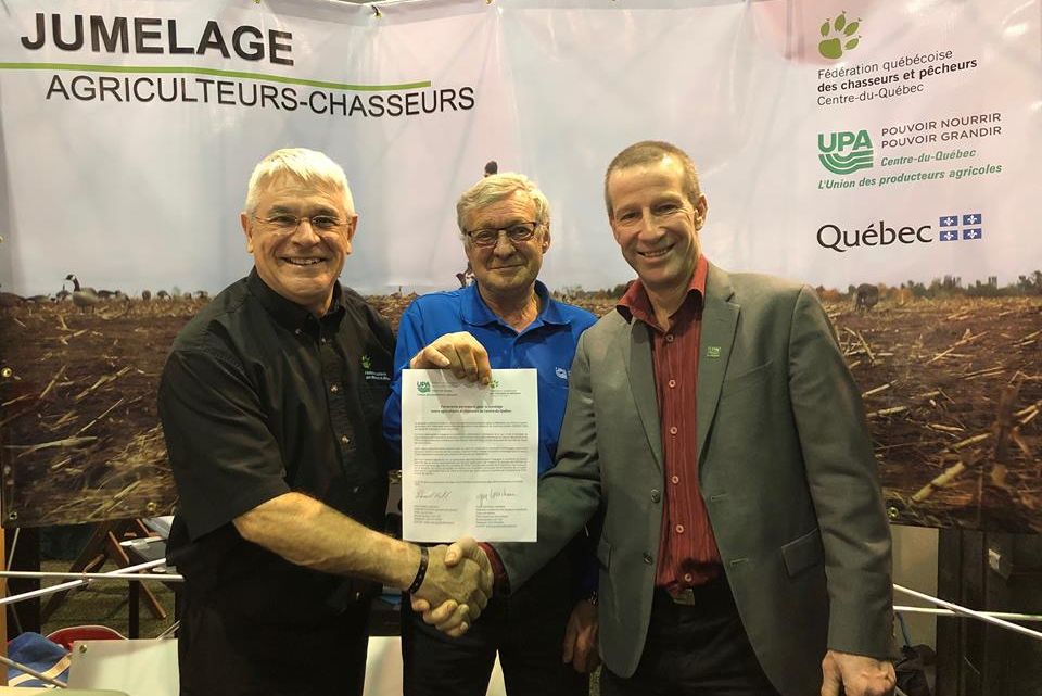 INITIATIVE. La Fédération de l’UPA du Centre-du-Québec annonce la signature d’un partenariat de jumelage avec la Fédération québécoise des chasseurs et des pêcheurs du Centre-du-Québec. Le projet vise à contrôler la déprédation animale en développant un système de maillage entre les agriculteurs et les chasseurs. Ce maillage permettra un cadre de gestion ordonné de la chasse en territoire privé au Centre-du-Québec.
