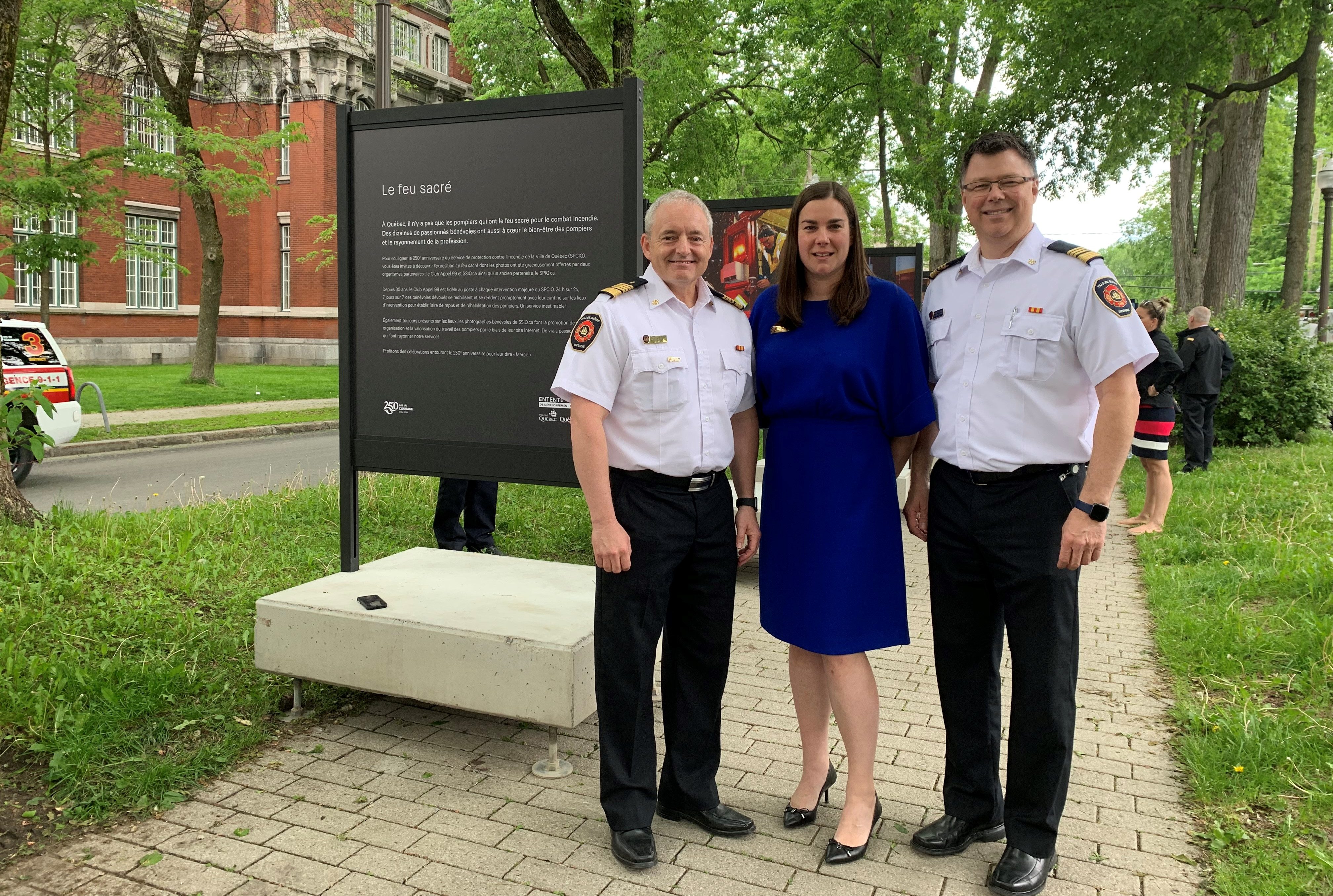 EXPOSITION. Le Service de protection contre l’incendie de la Ville de Québec (SPCIQ) et la Ville de Québec ont inauguré récemment l’exposition de photographie grand format intitulée Le Feu sacré. Réalisée dans le cadre du 250e anniversaire du SPCIQ, cette exposition gratuite de 22 photographies, installée sur le boulevard Langelier à l’intersection de la rue des Commissaires, jusqu’au 6 septembre, illustre le travail des pompiers en pleine action.