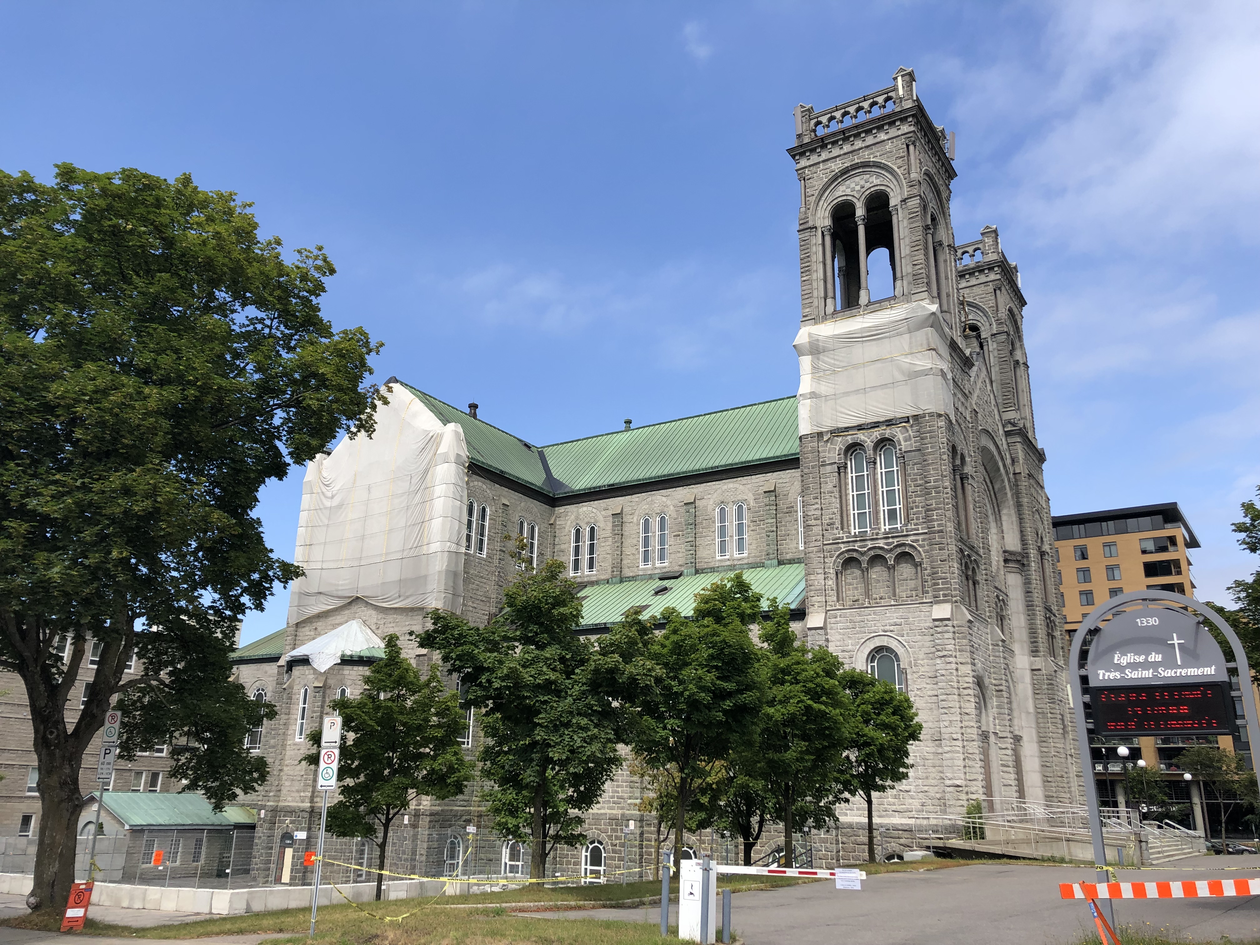 -L’église du Très-Saint-Sacrement, en vente et fermée pour des raisons de sécurité.