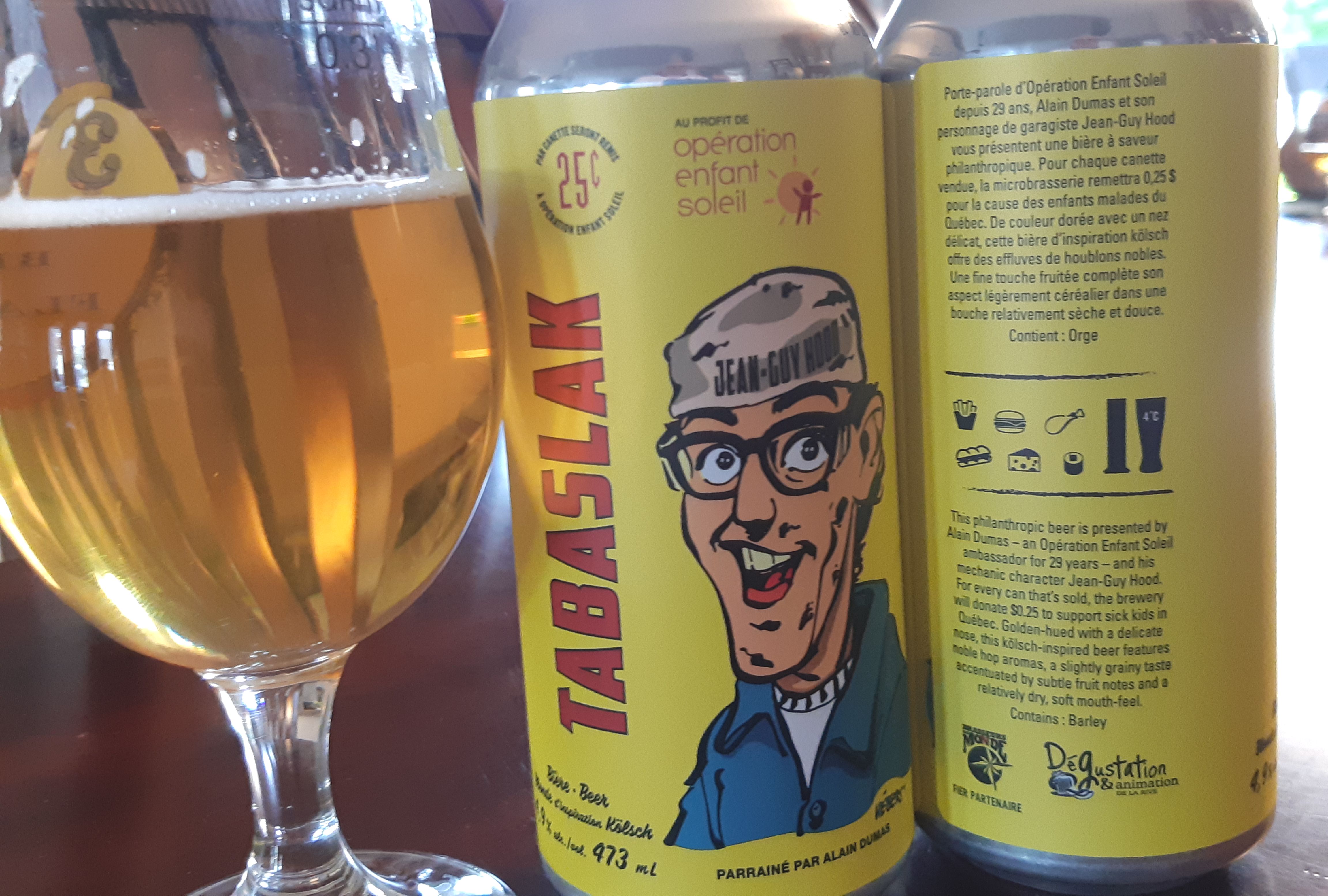 En vente partout dans la province, chaque canette de Tabaslak rapporte 0,25$ à Opération Enfant Soleil. La bière tire son nom du patois favori du mécano Jean-Guy Hood, personnifié par Alain Dumas, animateur du téléthon annuel.