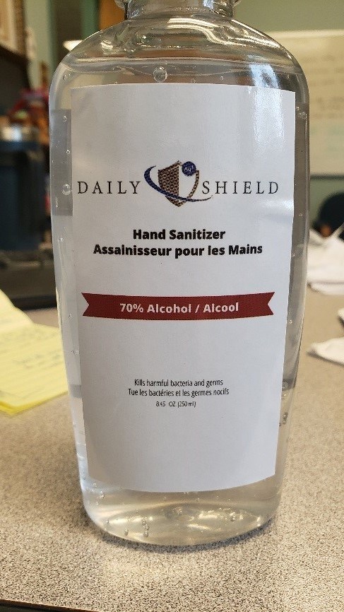 Santé Canada informe les Canadiens qu’une version contrefaite d’un désinfectant pour les mains autorisé de marque Daily Shield a été vendue dans un magasin Dollarama de Thunder Bay. La version contrefaite porte l’étiquette NPN 80098979, lot 6942; date d’expiration : mai 2023 et est vendue dans un format de 250 ml.