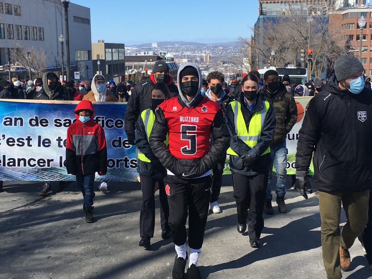 SOLIDARITÉ. Il y avait une grande diversité de gens présents à la marche pour la relance sportive organisée par l’étudiant de secondaire cinq du Séminaire Saint-François, Isaac Pépin. Responsables des sports, entraîneurs, parents, mais surtout beaucoup de jeunes athlètes provenant d’une multitude de disciplines sportives on voulu faire passer un message simple pour les décideurs: il est temps de laissez les jeunes faire du sport. Plusieurs milliers de personnes ont répondu présent au grand plaisir du jeune footballeur.