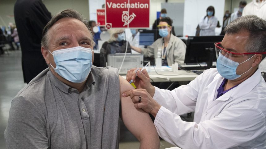 Le premier ministre François Legault a reçu aujourd’hui sa première dose du vaccin contre la COVID-19. Arrivé au stade olympique vers 14h, il a ensuite reçu une dose du vaccin Pfizer-BioNTech.
