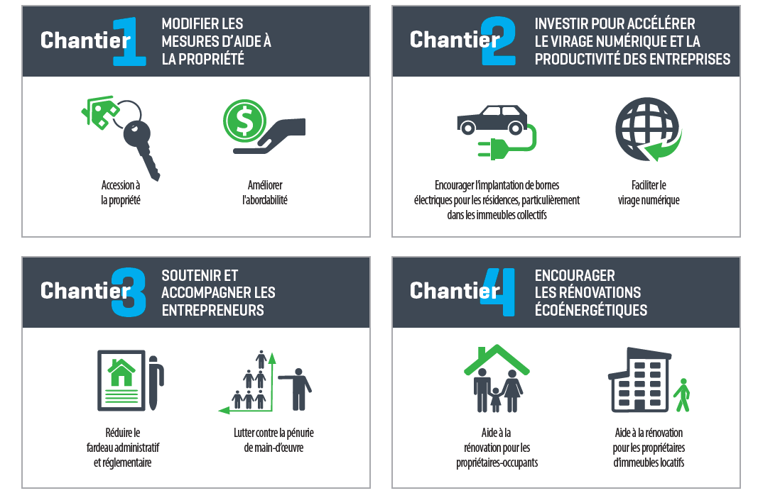Dans sa plateforme électorale, l’APCHQ propose par ailleurs des mesures pour soutenir et accompagner les entrepreneurs ainsi que pour investir dans l’innovation du secteur de la construction.