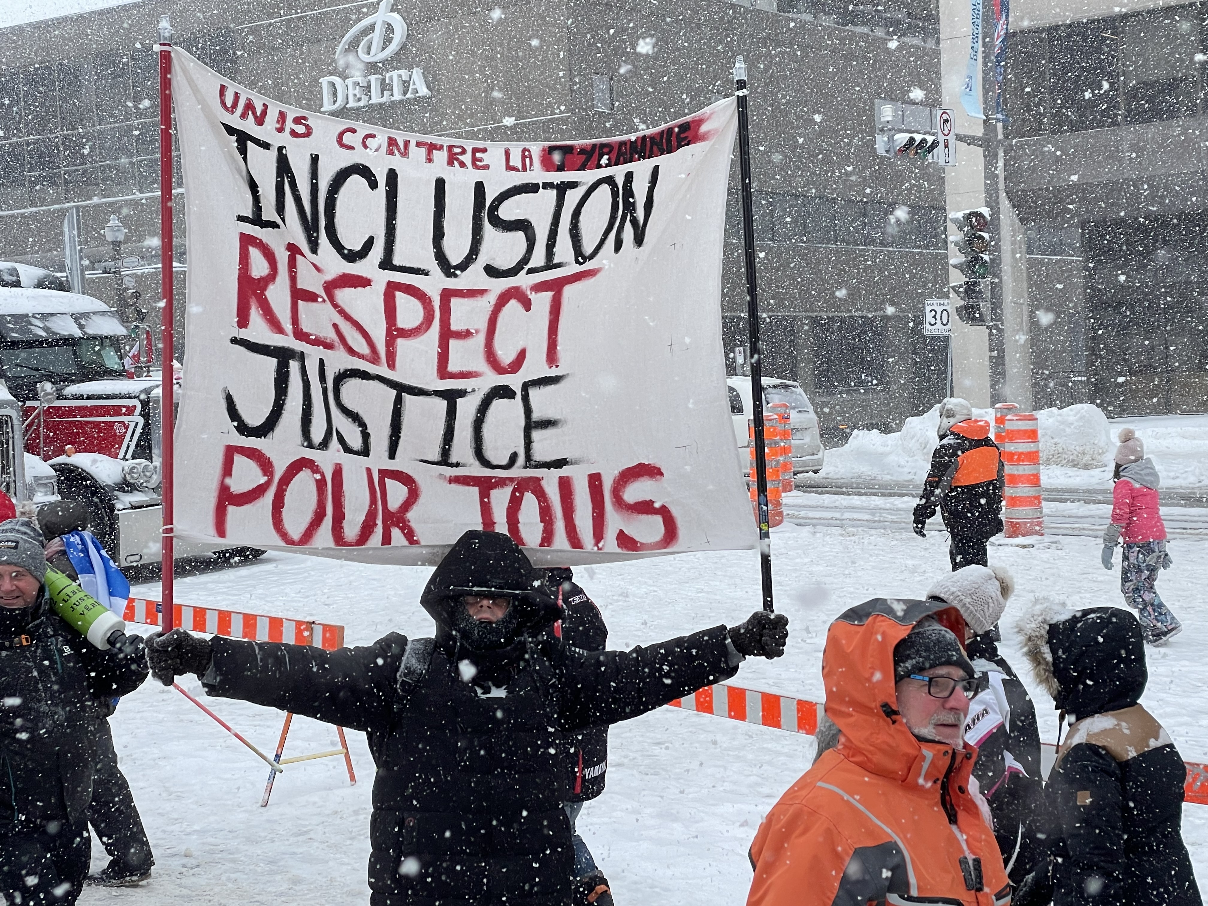 Les responsables de convois des différentes régions du Québec abondent dans le même sens que leur confrère. Le leader de celui de la Beauce, Keven Bilodeau, a tenu à s’adresser directement au gouvernement du Québec. «Après une fin de semaine comme celle qu’on vient de vivre, je pense que le message est clair. Au lieu d’envoyer promener M. Legault cette fois-ci, je propose qu’on lui souhaite une bonne semaine», a-t-il affirmé avant d’entonner un «bonne semaine M. Legault!» en chœur avec la foule présente aux alentours de la fontaine de Tourny.