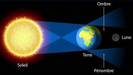 - L’éclipse partielle, lorsque la Lune ne traverse l’ombre de la Terre que partiellement;