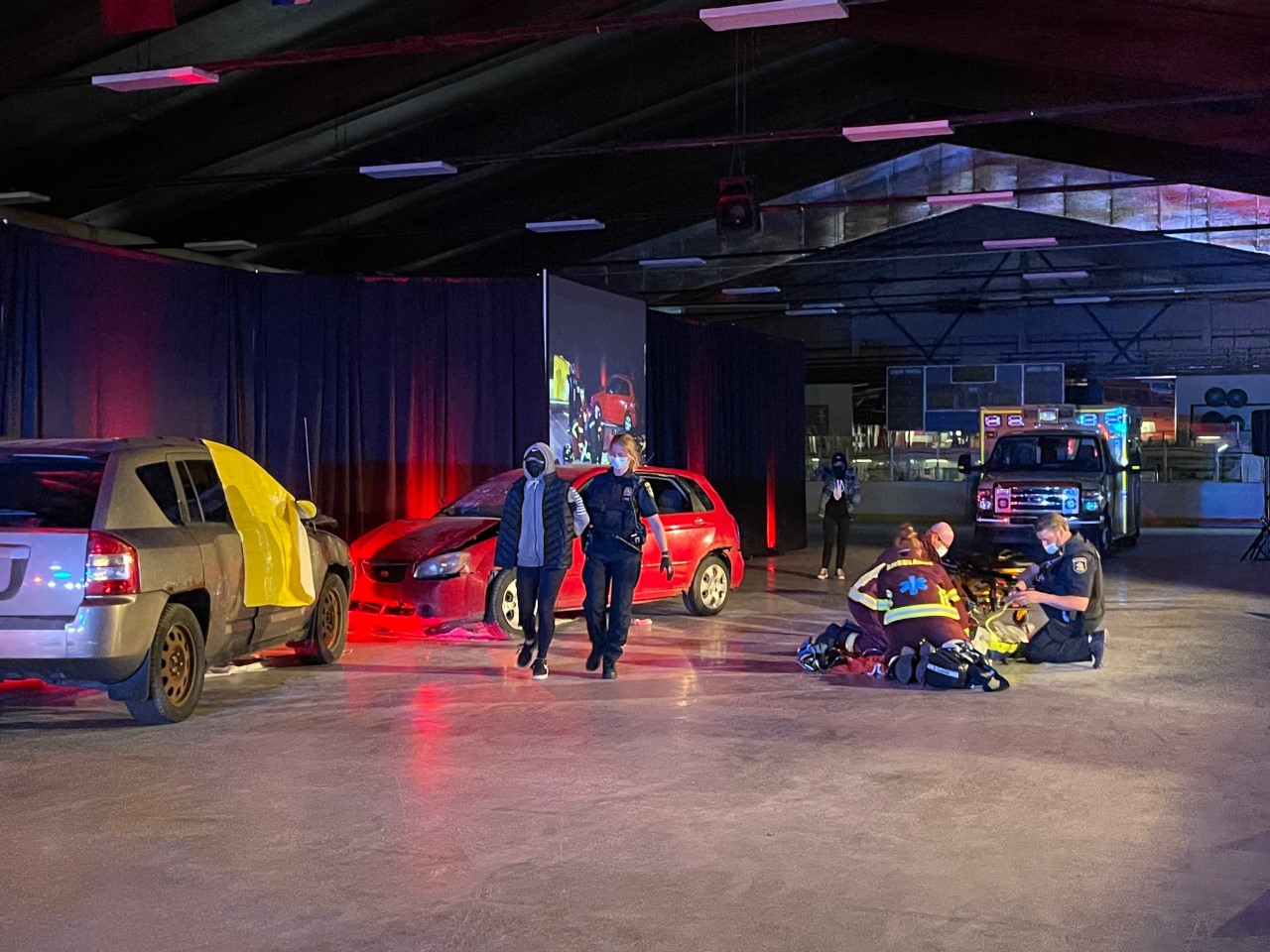 Plus de 2 400 élèves de 5e secondaire de la région de Québec ont pu voir l’une des cinq représentations, qui met en scène un accident grave de la route. Cette reconstitution multimédia combine séquences vidéo, témoignages, musique et théâtre pour illustrer le plus fidèlement possible la trajectoire d’un automobiliste adolescent aux facultés affaiblies, de l’accident jusqu’à sa réinsertion sociale. De vrais policiers, ambulanciers et médecins participaient à la simulation, comme si la réalité défilait sous les yeux des spectateurs attentifs.