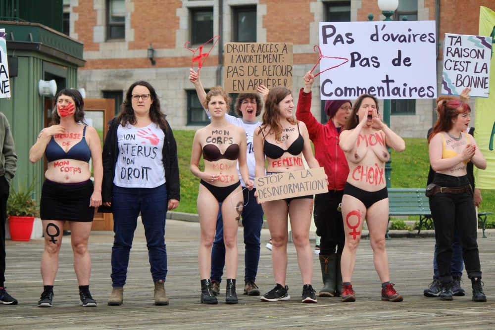 Par cette action choc et symbolique, les femmes ont choisi de transformer leurs corps en messages politiques afin de rappeler leur droit de pleinement contrôler leur corps et leur maternité. « Par cette action, nous souhaitons créer une image forte et puissante qui démontre toute la violence que ces attaques à l’avortement constituent pour les femmes et pour leur intégrité physique et morale. C’est leur vie que l’on met en danger lorsqu’on attaque le droit à l’avortement », s’insurge Élise Landriault-Dupont du RGF-CN.