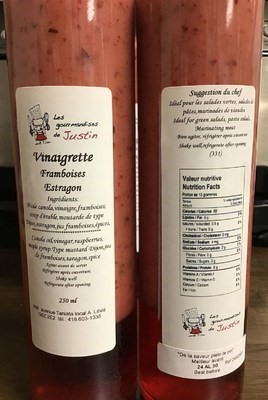 « VINAIGRETTE FRAMBOISES ESTRAGON » | LES GOURMANDISES DE JUSTIN | 250 ml | Unités vendues jusqu’au 16 juin 2022 ayant la mention suivante :