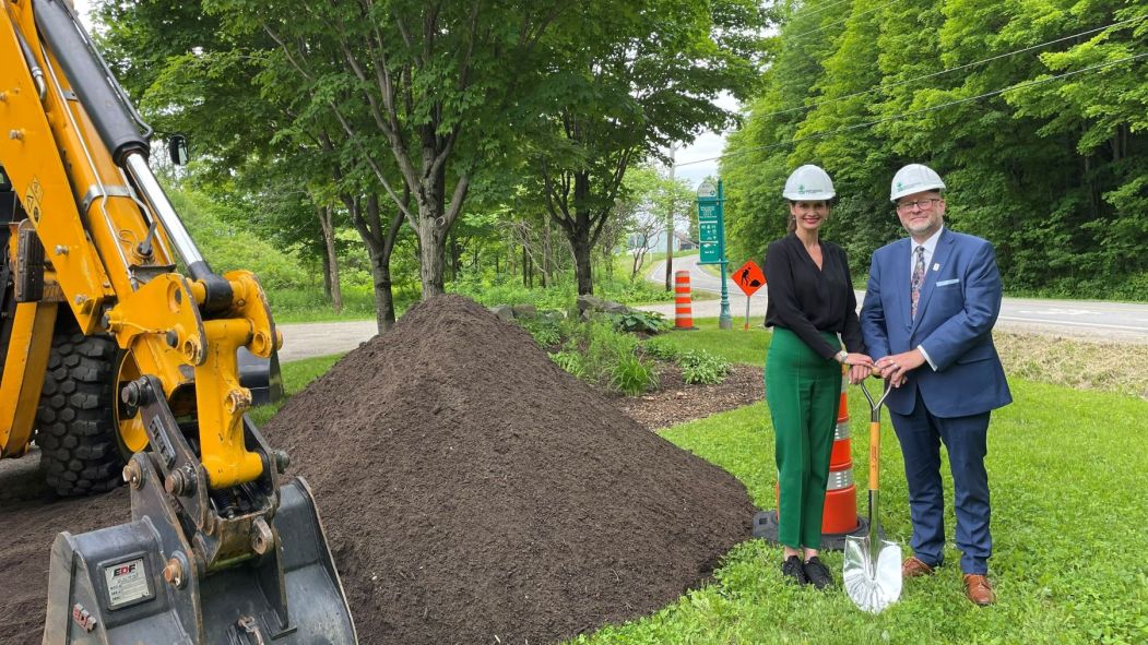 L’annonce a été faite par la députée-ministre locale, Geneviève Guilbault, et le maire de Saint-Augustin, Sylvain Juneau, à proximité du chantier sur le chemin du Roy. Photo: gracieuseté