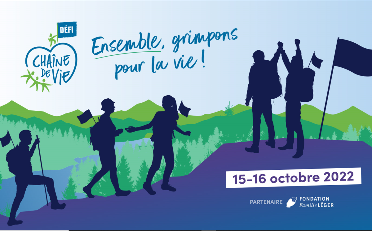 Pour s’inscrire au Défi Chaîne de vie ou pour faire un don: chainedevie.org.