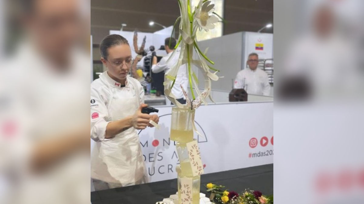 Mathilde Carrier, sous-cheffe pâtissière à l’Hôtel Le Château Laurier Québec et Yves Marie Rolland, chef pâtissier, chocolatier et enseignant au DEP en pâtisserie à l’école Fierbourg reviennent du prestigieux concours du Mondial des Arts sucrés.