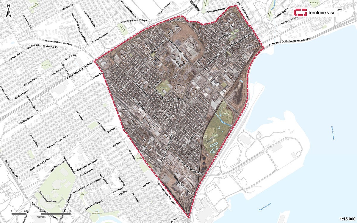 Le secteur visé par ces consultations concerne le quartier de Maizerets ainsi qu’une partie du quartier du Vieux-Moulin. Il est délimité par la voie ferrée parallèle au boulevard Henri-Bourrassa à l’ouest, l’autoroute Félix-Leclerc au nord, les avenues de la Lande et Saint-Ulric à l’est ainsi que l’autoroute Dufferin-Montmorency au sud.