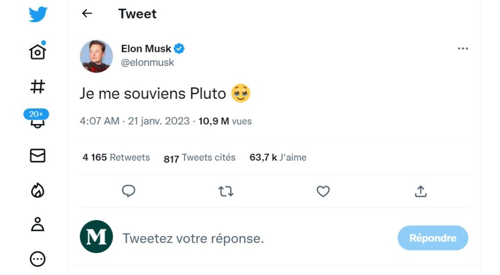 Le directeur général de la société Tesla aurait alors tout simplement eu, dans son tweet, une pensée pour l’astre déchu. Mais la référence au Québec est inévitable. Certains internautes lui ont d’ailleurs rappelé, avec un brin d’humour, dans les commentaires.