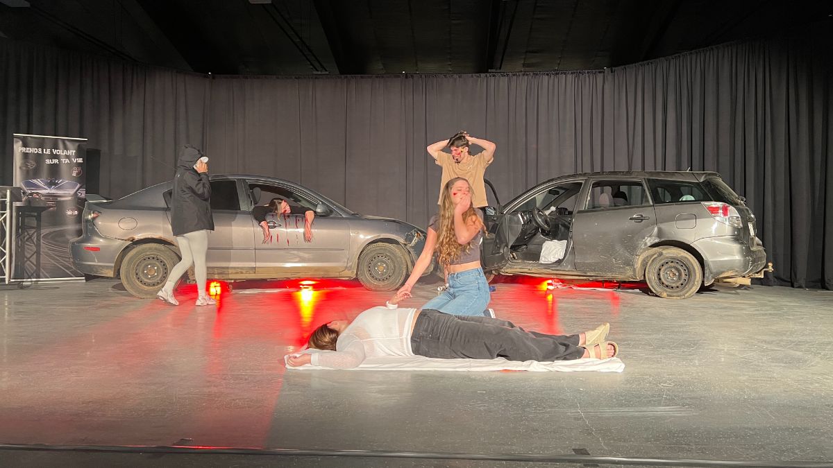 À quelques semaines de leur bal de finissants, les jeunes ont pu assister à la représentation simulée d’un grave accident de la route, causé par un conducteur aux capacités affaiblies par l’alcool.