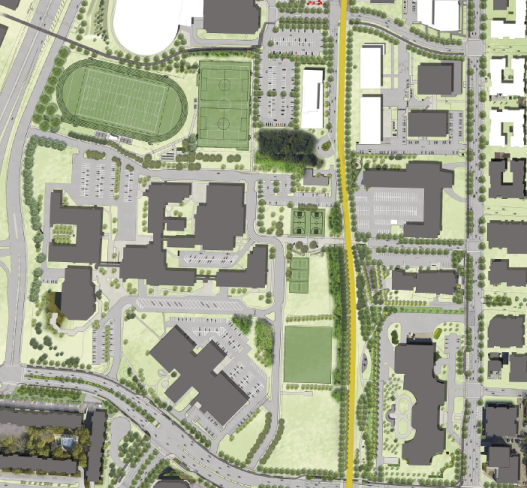 M. Pleau ajoute que le campus sera «plus vert que jamais» suite aux travaux de réaménagement. Bien qu’une portion du boisé situé au nord soit «sacrifiée» pour laisser place à un terrain de soccer naturel, il est prévu que 690 arbres soient plantés ailleurs sur le campus en guise de reboisement. À cette fin, les élèves de l’école seront mis à contribution dans le cadre d’un projet pédagogique. En plus de ces plantations de reboisement, 356 arbres d’alignement seront ajoutés le long du parcours du tramway.