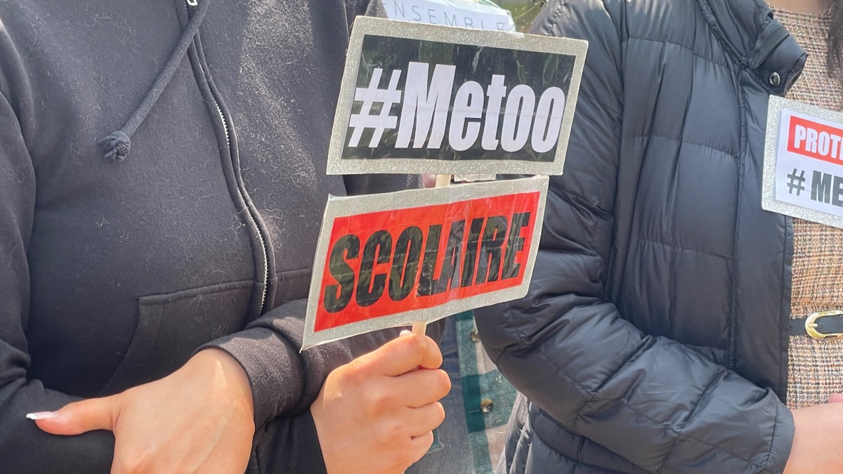 Plus tôt dans la journée, des victimes présumées d’agressions sexuelles en milieu scolaire primaire et secondaire ainsi que des proches de victimes présumées se sont réunies devant les locaux du Centre de services scolaire de Montréal (CSSDM) pour que «l’omerta et l’impunité» cessent.