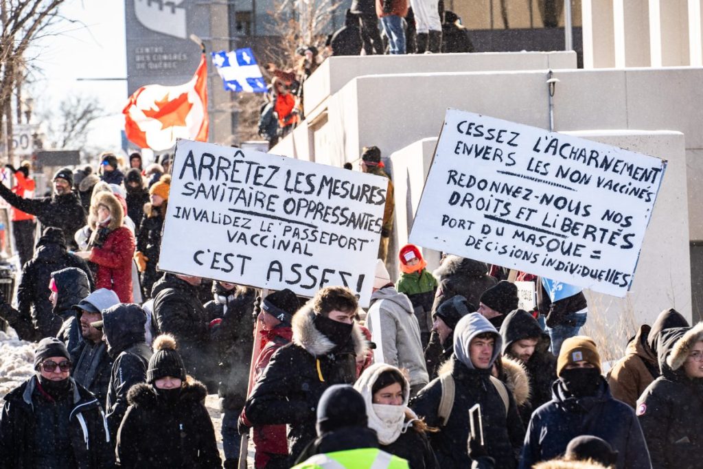 Des milliers de manifestants ont convergé vers la Colline Parlementaire à Québec samedi afin de démontrer leur opposition aux mesures sanitaires.