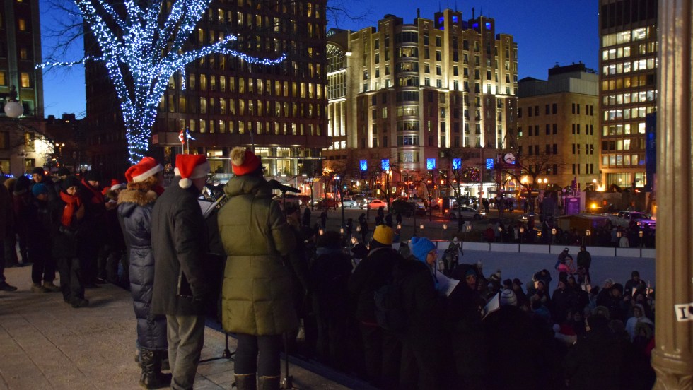 ÉVÉNEMENT. La place D’Youville et le Palais Montcalm ont fait rejaillir aujourd’hui la féérie de Noël en proposant un Chemin de Noël du chef Bernard Labadie auquel participait le quatuor