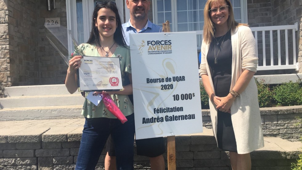 RÉCOMPENSE. Andrea Galerneau a eu tout un cadeau en ouvrant la porte d’entrée de sa maison. L’organisme Forces Avenir a choisi de surprendre l’élève de secondaire trois avec l’aide de