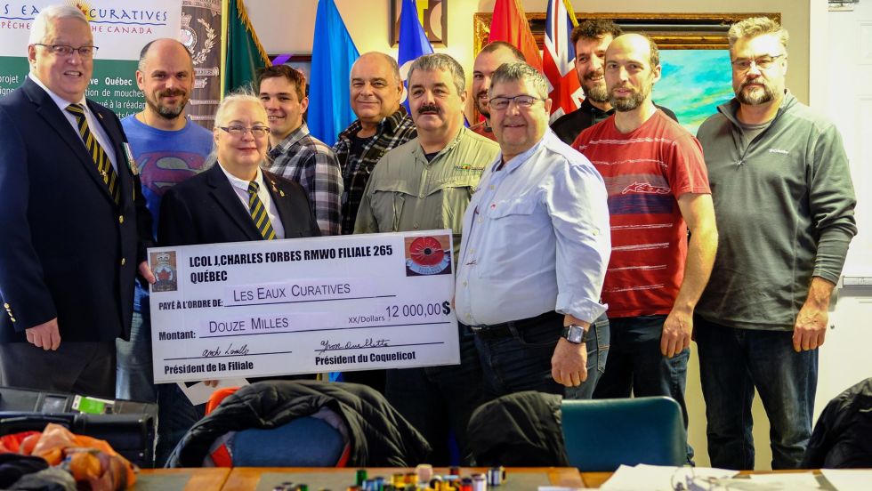 Récemment, le Comité du Coquelicot de la Filiale 265, Lt. Col. Jean-Charles Forbes, RMWO, Québec a remis un chèque de 12 000$ au projet Les Eaux Curatives par le pêche