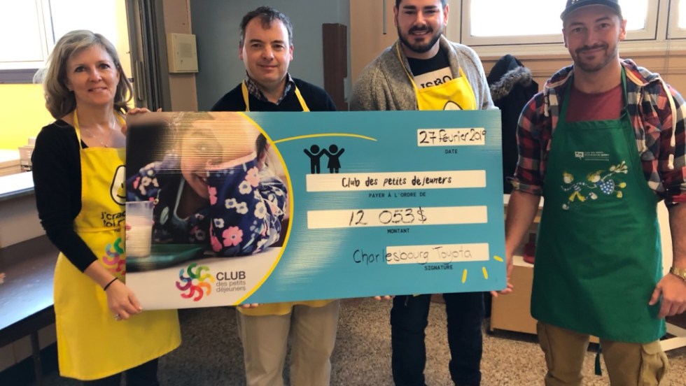 La troisième année de partenariat entre Charlesbourg Toyota et le Club des petits déjeuners a permis de remettre la coquette somme de 12 053$ afin de contribuer à nourrir les