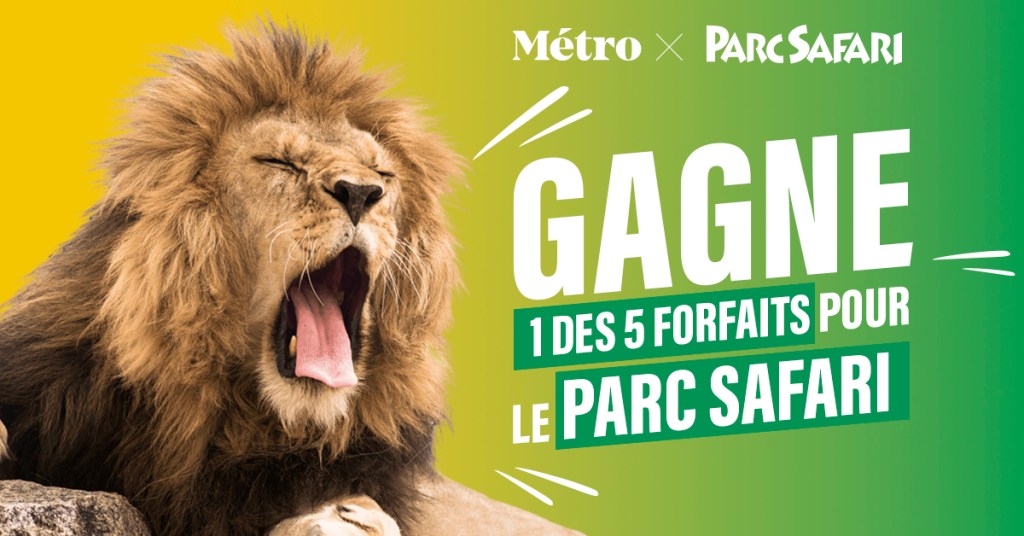 Métro Québec a un concours sensationnel qui va vous faire vibrer ! Nous mettons en jeu, du 12 au 31 juillet 2023, cinq forfaits de folie pour le Parc Safari (wwww.parcsafari.com) à l’occasion de la saison 2023. Et devinez quoi ? Chaque forfait comprend 4 billets adultes et 4 billets enfants, de quoi s’éclater en famille ou avec votre gang au Parc Safari !