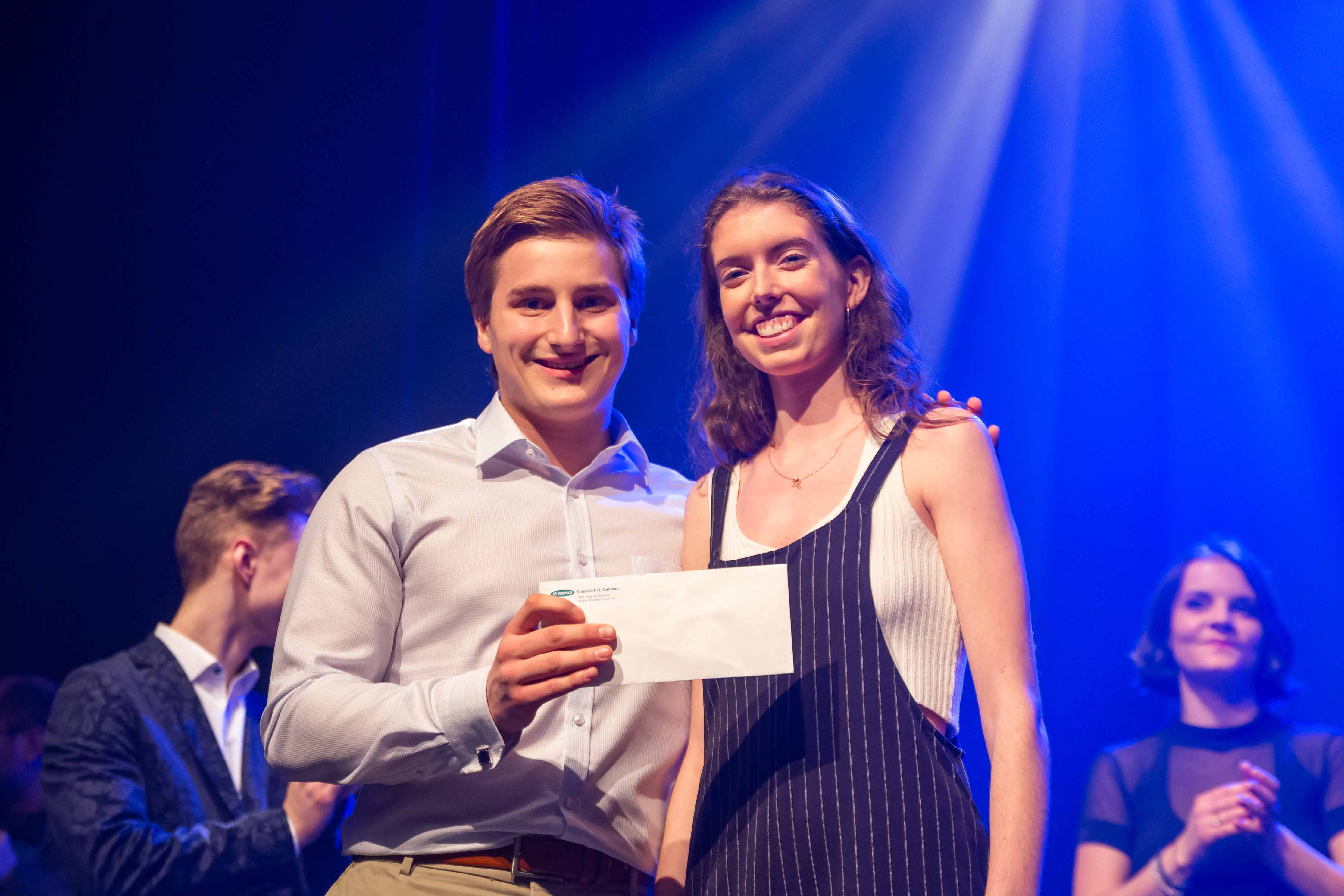 Sa victoire lui vaut une bourse de 400$ offerte par Coopsco F.-X.-Garneau. De plus, elle représentera le Cégep Garneau lors de la finale régionale de Cégeps en spectacle dans la région de Québec, qui se tiendra le 16 mars prochain également au Cégep Garneau.