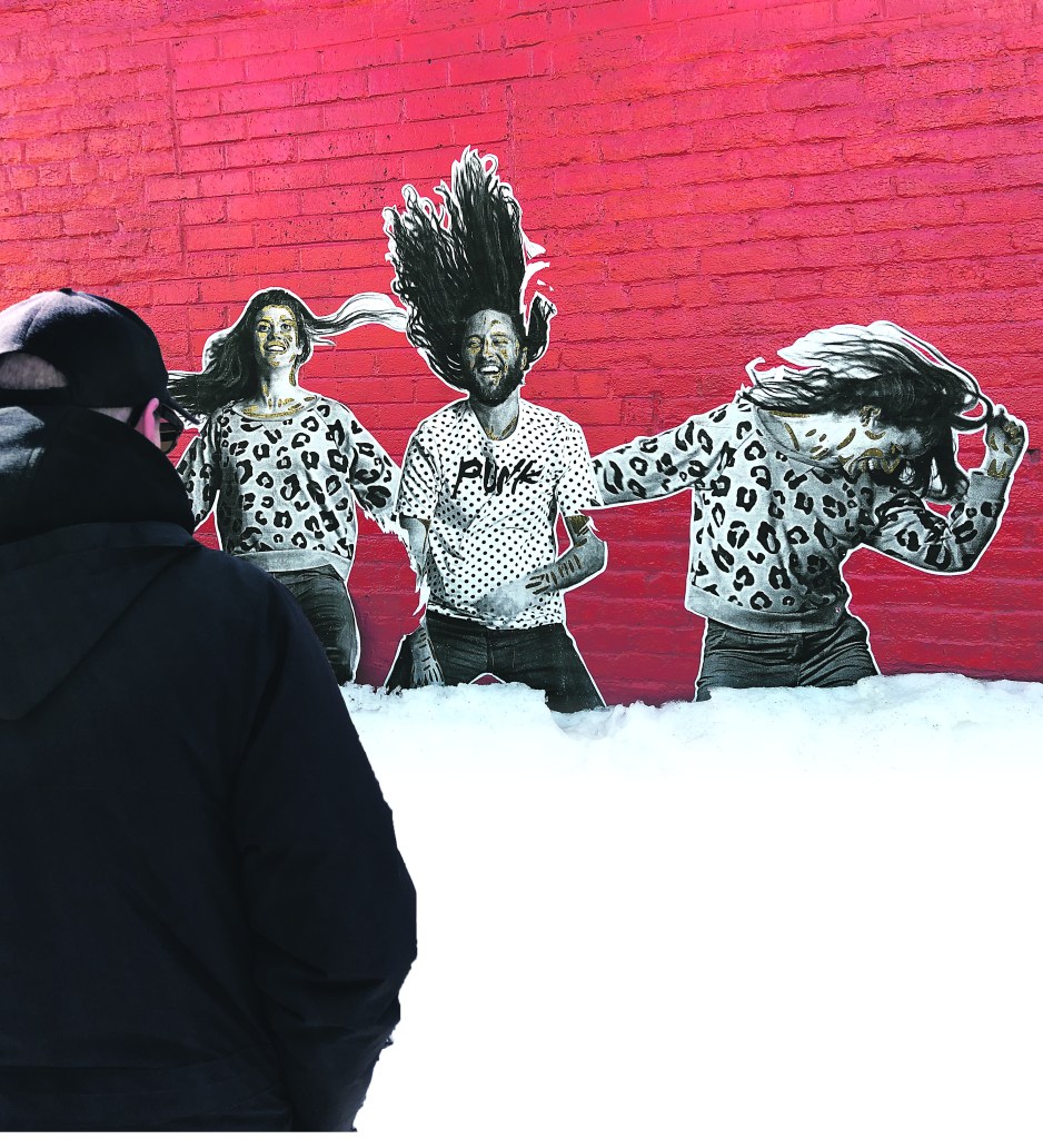 Wartin Pantois part d’injustices ou de problématiques sociales, souvent en lien avec l’actualité. Le but? Apporter des points de vue et des questions dans l’espace public grâce à l’art. «Je crée des choses qui me ressemblent avec les valeurs que je porte», confie M. Pantois. Parfois cependant, il choisit des thématiques plus larges, comme son collage intitulé Cadratures, qui met en scène des danseurs coincés dans des cadres. «Je crois que ces projets-là permettent une interprétation plus personnelle de l’œuvre. Par exemple, dans le cas de Cadratures, certains m’ont dit que ça leur évoquait la vie de couple […] Ces thématiques partent de questionnements plus personnels ou philosophiques que je me pose», fait-il observer.