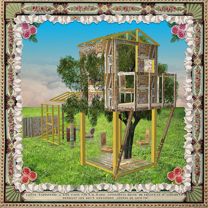 - Enfin, Laurence Gravel expose un travail exploratoire en vidéo d’animation qui s’inspire de l’iconographie de Versailles. Elle propose aussi un corpus photographique issu de performances diverses.
