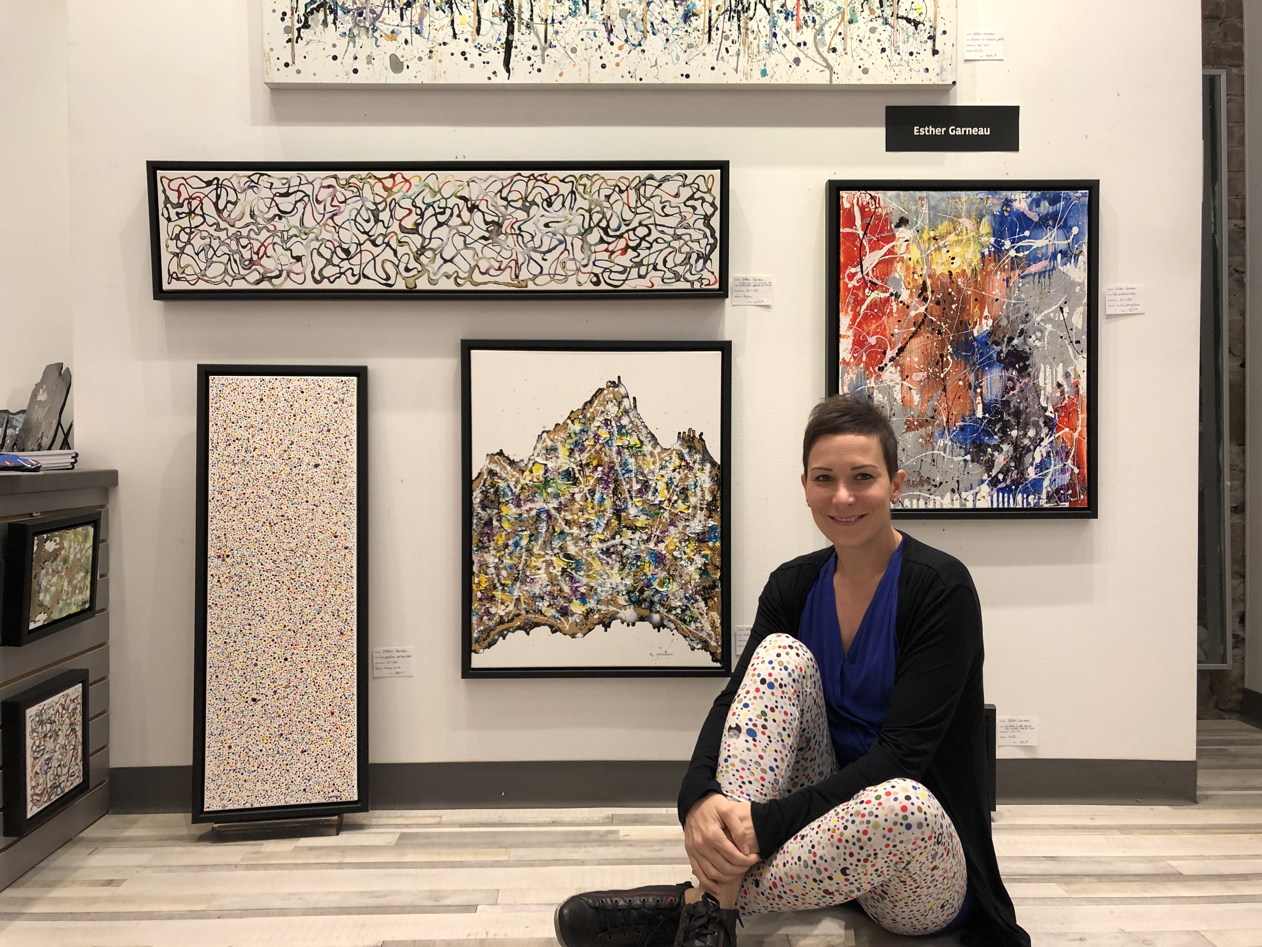 Épuisée par l’énergie que demandent les cinq à sept, les symposium où il faut trimballer ses toiles et la recherche constante de potentiels acheteurs, Esther Garneau a décidé qu’il fallait changer de méthode lorsqu’elle a quitté la galerie d’art qu’elle exploitait à Lac-Beauport. «J’étais écoeurée d’aller solliciter toujours le même monde, fait-elle valoir. J’ai eu besoin d’avoir une clientèle internationale». L’artiste lorgnait depuis un moment le local qu’elle occupe actuellement sur la rue Saint-Jean, qu’elle pensait, à tort, bien au-dessus de ses moyens. «J’ai démontré [au propriétaire] que je ne suis pas seulement une artiste, mais aussi une femme d’affaires». Elle a finalement convaincu l’américain du New Hamsphire et a signé le bail. Des œuvres d’art remplacent désormais le stand de tir installé auparavant à cette même adresse qui avait créé une polémique.