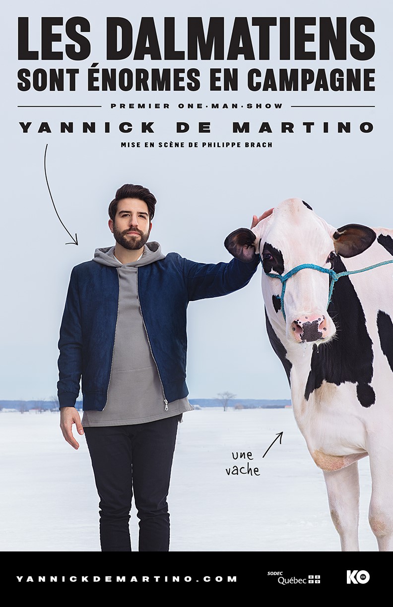 CRITIQUE. Neuf ans après sa victoire au concours télévisuel En route vers mon premier gala, Yannick de Martino présentait hier son premier one man show: Les Dalmatiens sont énormes en campagne au Théâtre du Petit Champlain.