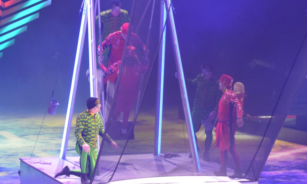 La deuxième partie est tout aussi captivante par ses numéros et les performances d’individus, dont celui d’un équilibriste et le synchronisme de quatre patineuses qui présentent une chorégraphie de bungee.