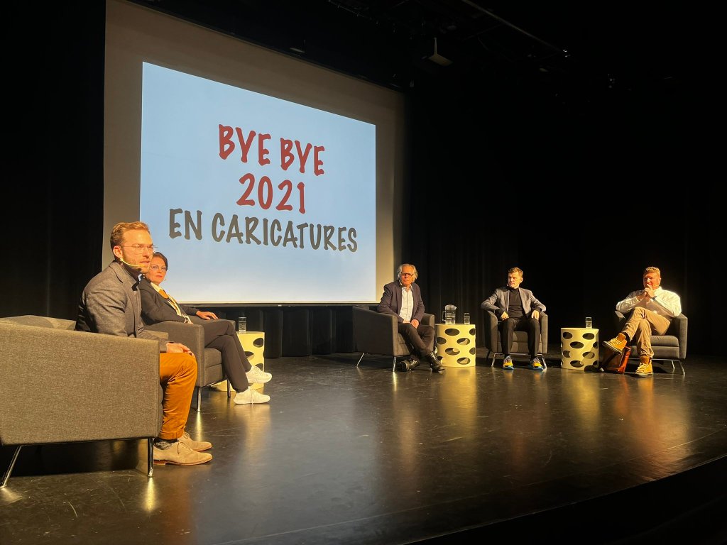 La section Québec de la Fédération professionnelle des journalistes du Québec a présenté la 12e édition de son traditionnel Bye Bye en caricatures le 11 décembre dernier au Musée de la civilisation. Pour l’occasion, le nouveau maire de Québec, Bruno Marchand a été invité à commenter les œuvres des caricaturistes André-Philippe Côté (Le Soleil) et Yannick Lemay alias Ygreck (Journal de Québec) dans une ambiance décontractée.