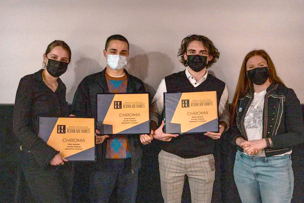 CULTURE. Le Cégep Limoilou se démarque une fois de plus sur la scène étudiante au Québec. Le 27 mars dernier, Eliott Marquis, Raphaël B. Lévesque et Camille Tanguay, tous les trois étudiants au programme Arts, lettres et communication, profil Créativité et médias ont remporté le prix du meilleur film de fiction au Festival du Film Étudiant de Québec (FFEQ) pour leur court-métrage Chroma.
