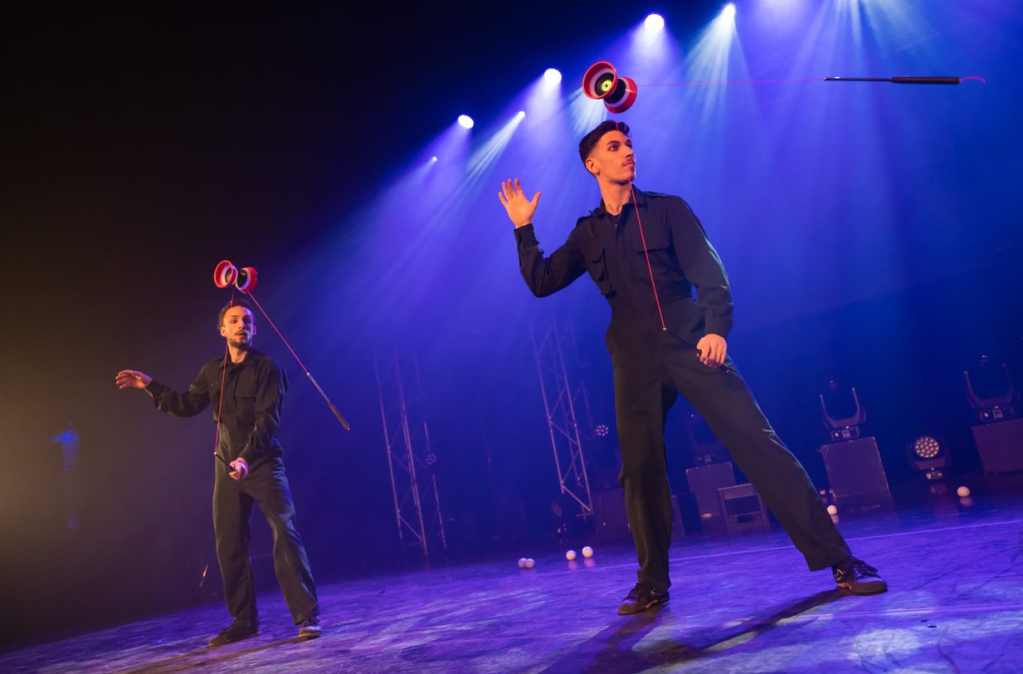 Pour leur cohérence artistique, leur professionnalisme et leur singularité, Phil&Dom (Philippe Raymond et Dominic Thompson) ont conquis le jury avec leur numéro en arts du cirque. En raflant la première place, le duo du Cégep Limoilou met la main sur une bourse de 3000$ offerte par Desjardins.