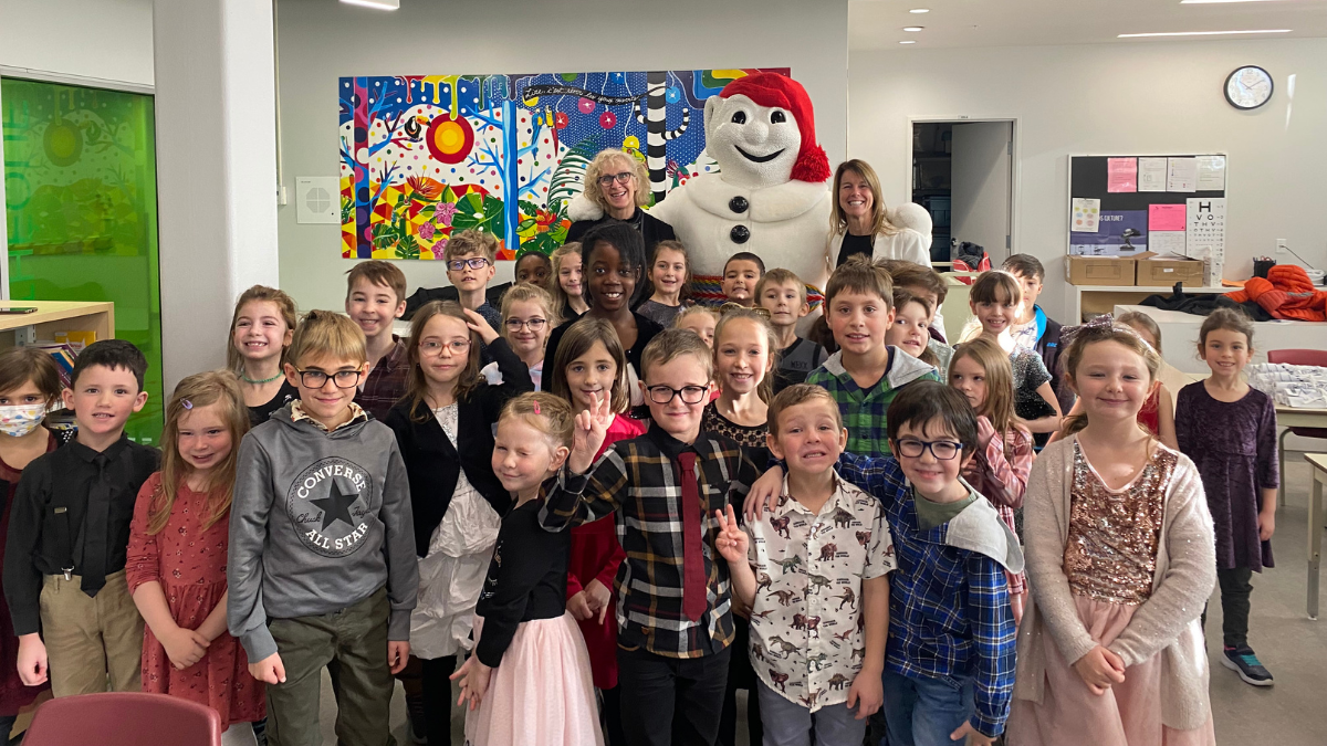 C’est à l’École du Beau-Séjour à Québec que Bonhomme Carnaval a procédé récemment au lancement du 5e tome de ses aventures : Le laboratoire secret de Bonhomme Carnaval. Il a profité de l’occasion pour en faire la lecture à une classe de maternelle et une classe de deuxième année. Les tout-petits étaient enchantés de cette grande visite dans leur bibliothèque. Ce livre pour enfants, qui contient également une petite section de jeux, est entièrement fait au Québec.