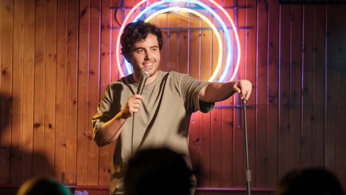 Cette fois, ce n’est pas le monde de la technologie, mais plutôt le milieu de l’humour pré-mouvement MeToo qui passe sous le tordeur. Raph (formidable Étienne Galloy), un humoriste de la relève dont la carrière lève aussi mal qu’un pain sans gluten, rencontre Laurie (charmante Léane Labrèche-Dor), l’assistante du gérant d’artistes pas trop fin Forand (délirant Éric Bernier). Ensemble, ils se mettent à écrire des gags qui ouvrent à Raph des portes qui semblaient scellées à jamais.