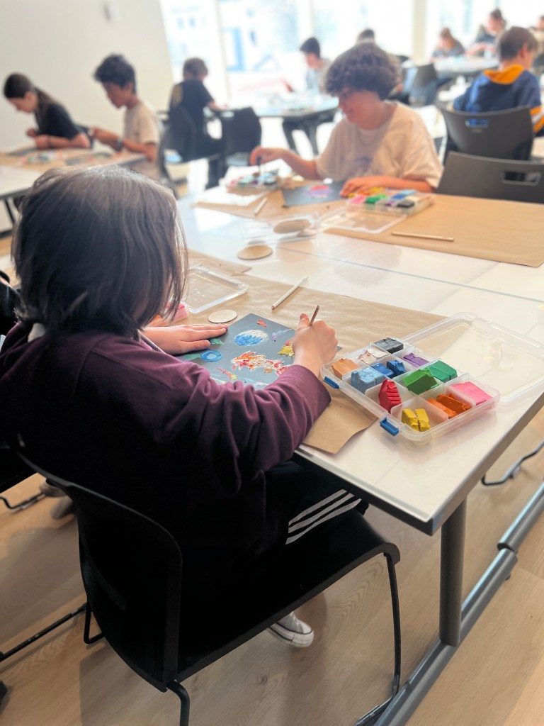 L’espace atelier, adjacent aux salles de l’exposition, permettra aux petits et grands d’explorer différents médiums et de créer des œuvres, en collaboration avec l’équipe de médiation culturelle.