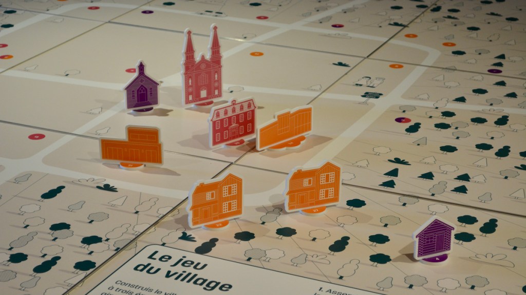 Les enfants devront déplacer neufs blocs afin de former la carte du Trait-carré. Par la suite, ils devront placer différents bâtiments qui y ont été construits au fil des siècles. Photo: Victoria Sanfaçon/Métro.