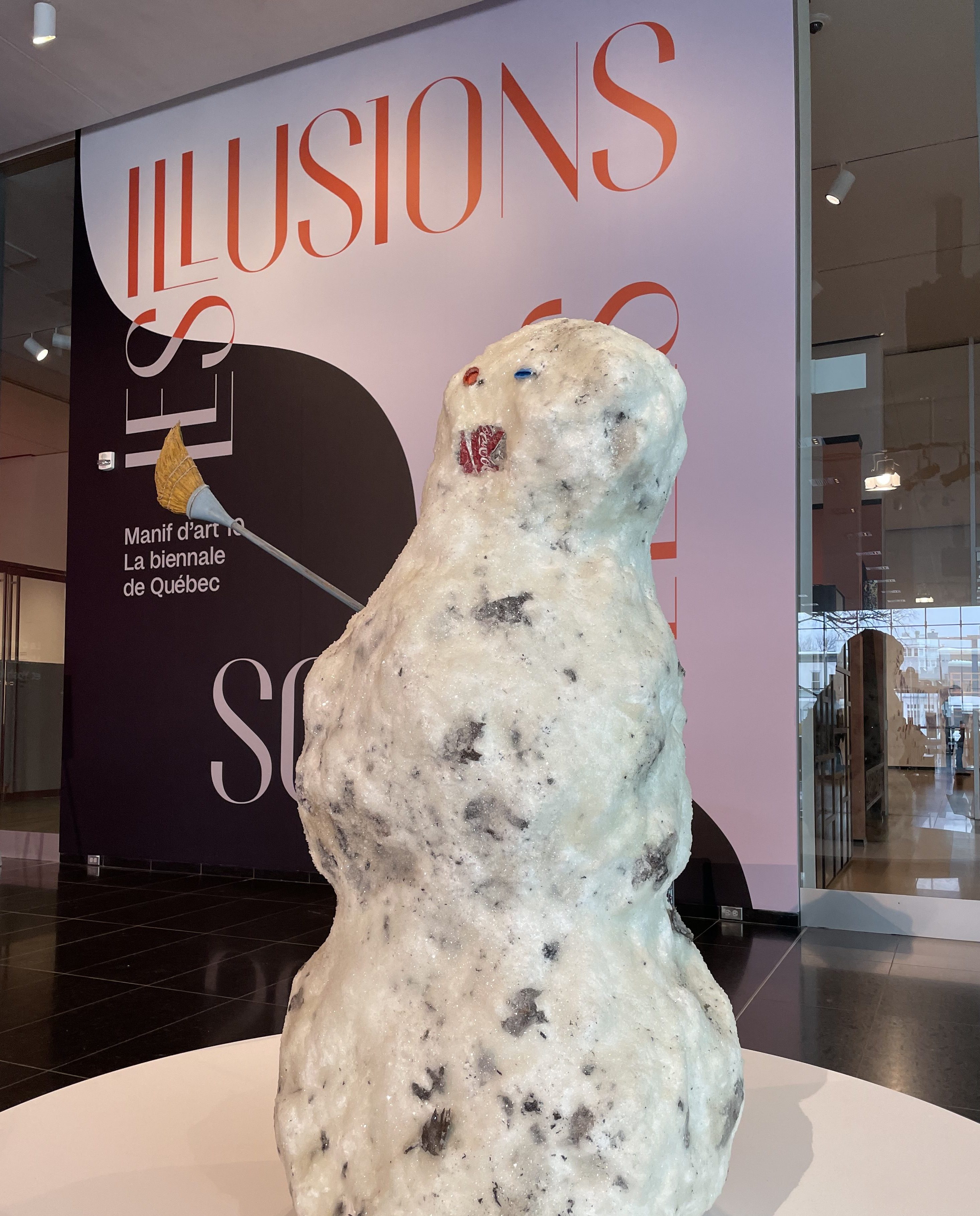 L’œuvre Snowman with Coke can mouth and broom frappe fort pour ouvrir le bal de la tromperie. L’artiste américain Tony Tasset a utilisé du verre, de la résine, de l’émail, de la peinture à l’huile, du polystyrène et différents métaux pour créer un homme des neiges à s’y méprendre avec la réalité, comme s’il avait été conçu lors des premières précipitations hivernales.