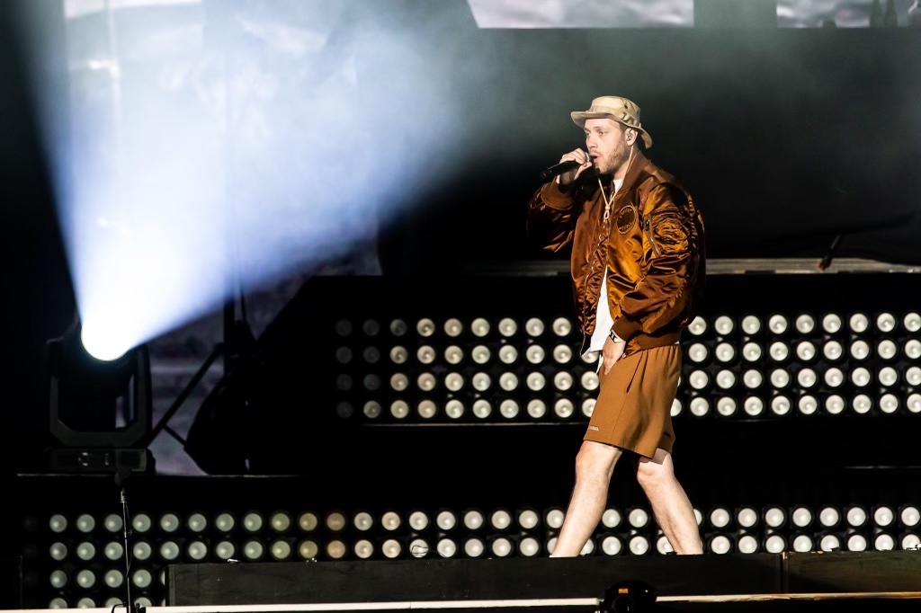 Le Belge Roméo Elvis, aussi connu comme était le frère de la vedette Angèle, a précédé Loud sur la scène des Plaines. Alors qu’en début de programme la foule semblait plus curieuse qu’active, il l’a conquise tout au long de sa prestation. Allant des expressions propres à la Belgique aux blagues en demandant à la foule de «chanter de manière dégueulasse» les parties d’Angèle sur J’ai vu. Il a également demandé aux fans de chanter avec lui quelques minutes plus tard sur Soleil, tout en reconnaissant qu’il était plus connu sur le Vieux Continent, «mais qu’il fallait chanter quand même». Puis sur Pogo, qui n’a rien à voir avec un hommage aux célèbres saucisses sur bâtonnet, il a souhaité «avoir le plus grand trou de l’histoire de Québec». Disons qu’il a eu un mushpit, mais les Plaines ont connu mieux par le passé. Pendant Chaud, il a retiré son chandail se retrouvant torse nu sur scène, et s’est demandé où était bien passé «le trou» qu’il avait demandé quelques minutes plus tôt. À quelques reprises pendant son spectacle, il a mentionné qu’il aurait bien aimé rester plus longtemps dans la région. Il a conclu en demandant à l’assistance «d’éclairer la scène» avec leurs téléphones. Puis, il en a emprunté un pour y laisser un souvenir vidéo en interprétant Malade.