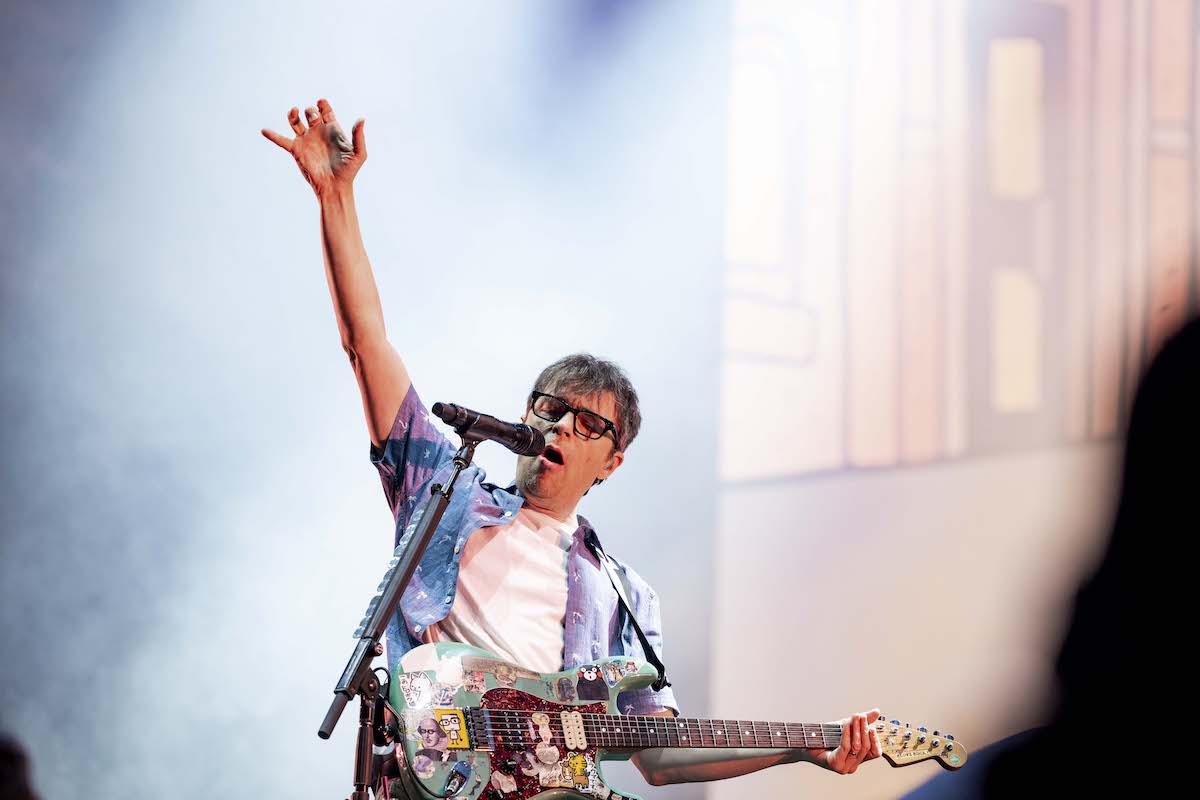 C’est à Weezer qu’est revenue la tâche de clore la soirée. Appuyés par un décor rappelant l’habitacle d’une voiture et les voyages qu’on fait à bord de celles-ci, Rivers Cuomo et sa bande ont amené les festivaliers dans un périple de 75 minutes allant «de 1984 à aujourd’hui». Amorçant la soirée avec My Name Is Jonas puis Beverly Hills, Return To Ithaka et The Good Life, le band s’est ensuite arrêté pour augmenter le volume sur le bouton de la radio géante de voiture installée derrière eux.