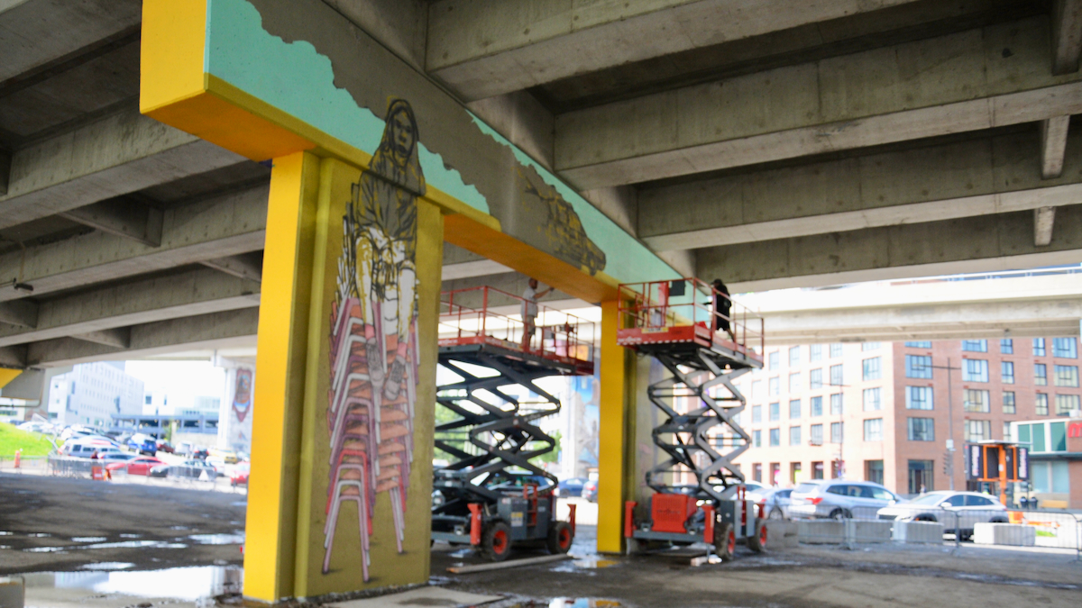 Il suffit de passer autour de l’Îlot Fleurie ces jours-ci pour constater qu’il y a de l’action sur les piliers de l’autoroute Dufferin-Montmorency. Près d’une quinzaine d’artistes muralistes d’ici et d’ailleurs y sont présentement au travail afin d’offrir un tout nouveau Passage Mural aux citoyens du quartier Saint-Roch. Celui-ci sera inauguré dès 17h le samedi 12 août.