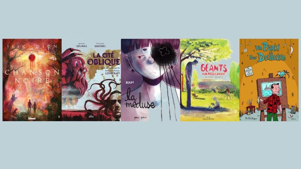 Deux bandes dessinées liées à l’horreur et au fantastique se retrouvent parmi les cinq finalistes, soit Chanson noire de Jeik Dion et La cité oblique de Christian Quesnel et Ariane Gélinas. Les trois autres finalistes sont La méduse de Boum, Géants aux pieds d’argile d’Alain Chevrier et Mark McGuire ainsi qu’Un Paris pour Dallaire de Siris et Marc Tessier.