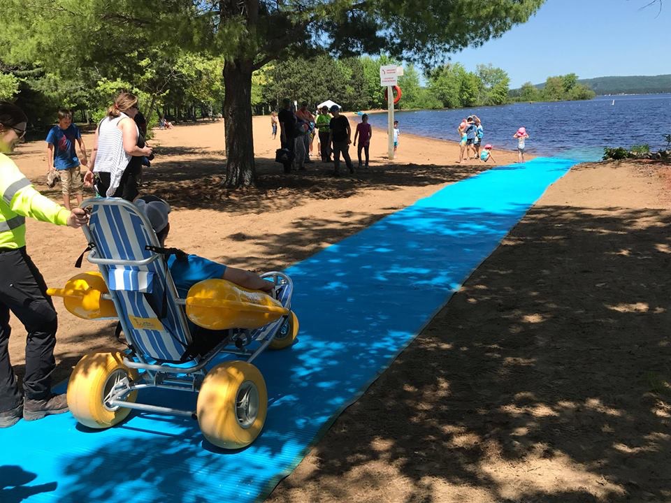 Dans la foulée, Marc Lacasse invite les centres de loisirs, campings, camps de vacances, bases de plein air de même que les municipalités et la Sépaq à se questionner sur l’accessibilité à leurs installations de plaisance. Nombreux au Québec, les plans d’eau représentent une source de plaisir qui vient avec des enjeux d’accès pour les personnes à mobilité réduite. Leur donner la chance de profiter des plages et bords de lac en toute sécurité, sans le stress d’affronter un terrain hostile, devient envisageable.