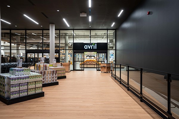 Le nouveau Avril occupe la totalité du rez-de-chaussée du complexe Place de la Cité. Il est accessible à partir de deux entrées distinctes, soit celles des stationnements extérieur et intérieur.