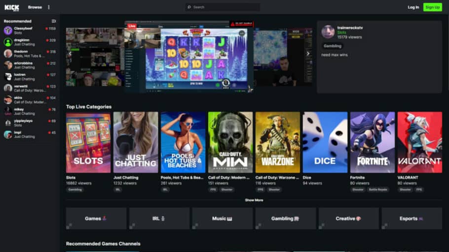 Sur Kick, les utilisateurs peuvent profiter pleinement de divers types de contenu comme le gambling, jeux vidéo, art, etc.